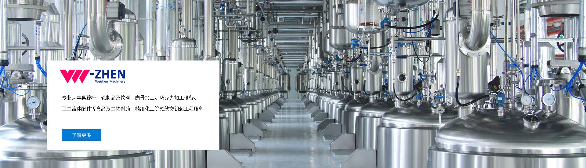溫州唯真機械有限公司坐落于美麗的東海之濱---溫州“中國食品制藥機械產(chǎn)品基地”工業(yè)園區(qū)內,是一家專注于健康裝備領域的專業(yè)化科技發(fā)展型企業(yè)。公司集科研開發(fā)、工藝設計服務、工程制造、安裝調試及培訓為一體,專業(yè)從事果蔬汁、乳制品及飲料、肉骨加工、巧克力加工設備、衛(wèi)生流體配件等食品及生物制藥、精細化工等整線交鑰匙工程服務,公司率先引進、消化國外先進技術及工藝,持續(xù)創(chuàng)新,積極促進行業(yè)內的深入交流與合作,推動行業(yè)的健康有序發(fā)展。我們堅持發(fā)展科技為依托,不斷吸收國內外先進制藥、食品機械加工經(jīng)驗,大膽創(chuàng)新研制。引進高素質人才,強化企業(yè)內部管理,以靈活的經(jīng)營機制積極參與市場競爭,以質量服務求生存、以科技進步圖發(fā)展,贏得了廣大客戶的支持和信賴,在市場經(jīng)濟大潮中不斷探索前進。 唯真機械在業(yè)內已取得國內眾多客戶的肯定和支持的基礎上,不斷提升核心競爭力,不斷優(yōu)化產(chǎn)品結構,不斷完善管理機制,積極引進技術人才,以強大的技術實力為后盾,致力新產(chǎn)品的設計、開發(fā)、推廣,務求發(fā)最優(yōu)良的品質、全新的唯真形象,回報廣大客戶。
